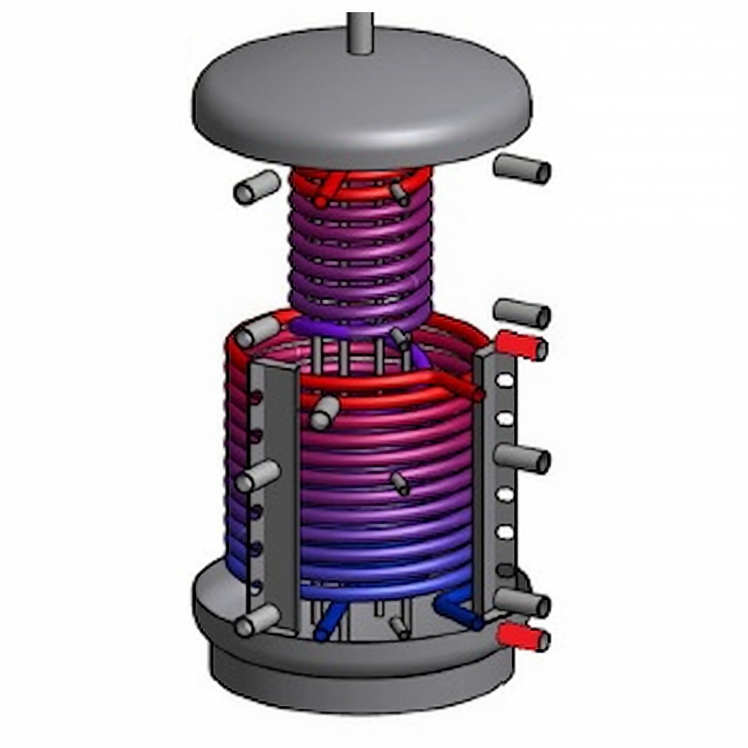 El tanque está fabricado en acero S235JRG2 de alta calidad, conforme a la norma DIN 4753/EN 12897, y el intercambiador de calor de agua potable está fabricado con tubo corrugado de acero inoxidable 1.4404 (fabricado en Alemania). El tanque no tiene tratamiento en el interior y está imprimado en el exterior, con las conexiones del intercambiador de calor de agua potable ubicadas en el lateral.
