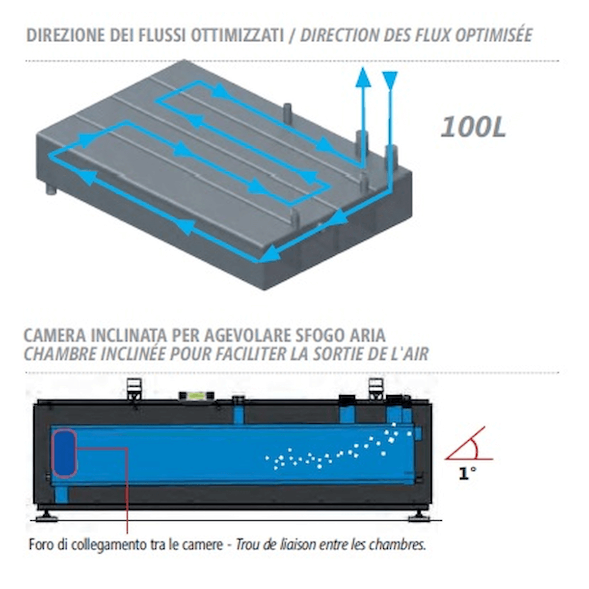 BOMBER 100B je nová a inovativní, ultra plochá, obdélníková vyrovnávací nádrž s objemem 100 litrů, která zaručuje minimální obsah vody v systému pro správný provoz tepelného čerpadla.