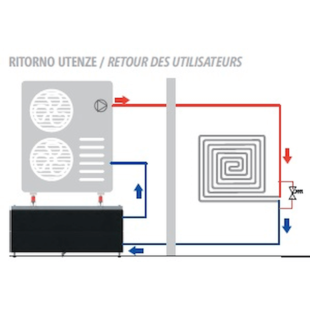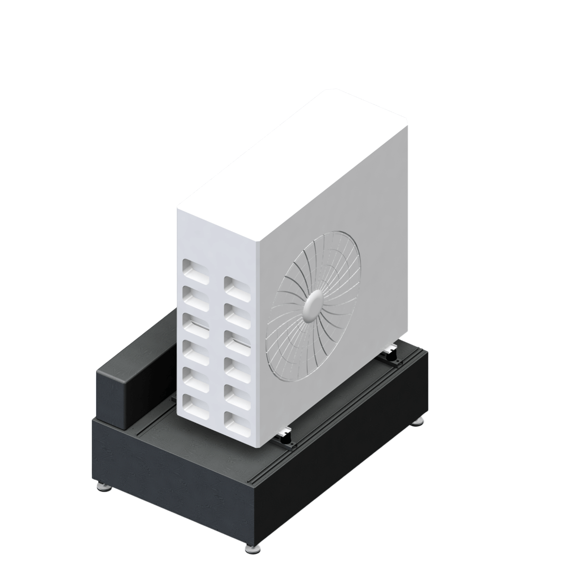 Je určen pro venkovní instalaci. Slouží jako základna pro tepelné čerpadlo (max. 150 kg). Díky těmto vlastnostem je jedinečný a exkluzivní a definitivně eliminuje potřebu dalšího vnitřního prostoru. Dodává se s předem vybavenou antivibrační sadou pro tepelné čerpadlo. Je připraven pro instalaci expanzní nádrže pomocí speciální sady dodávané samostatně.