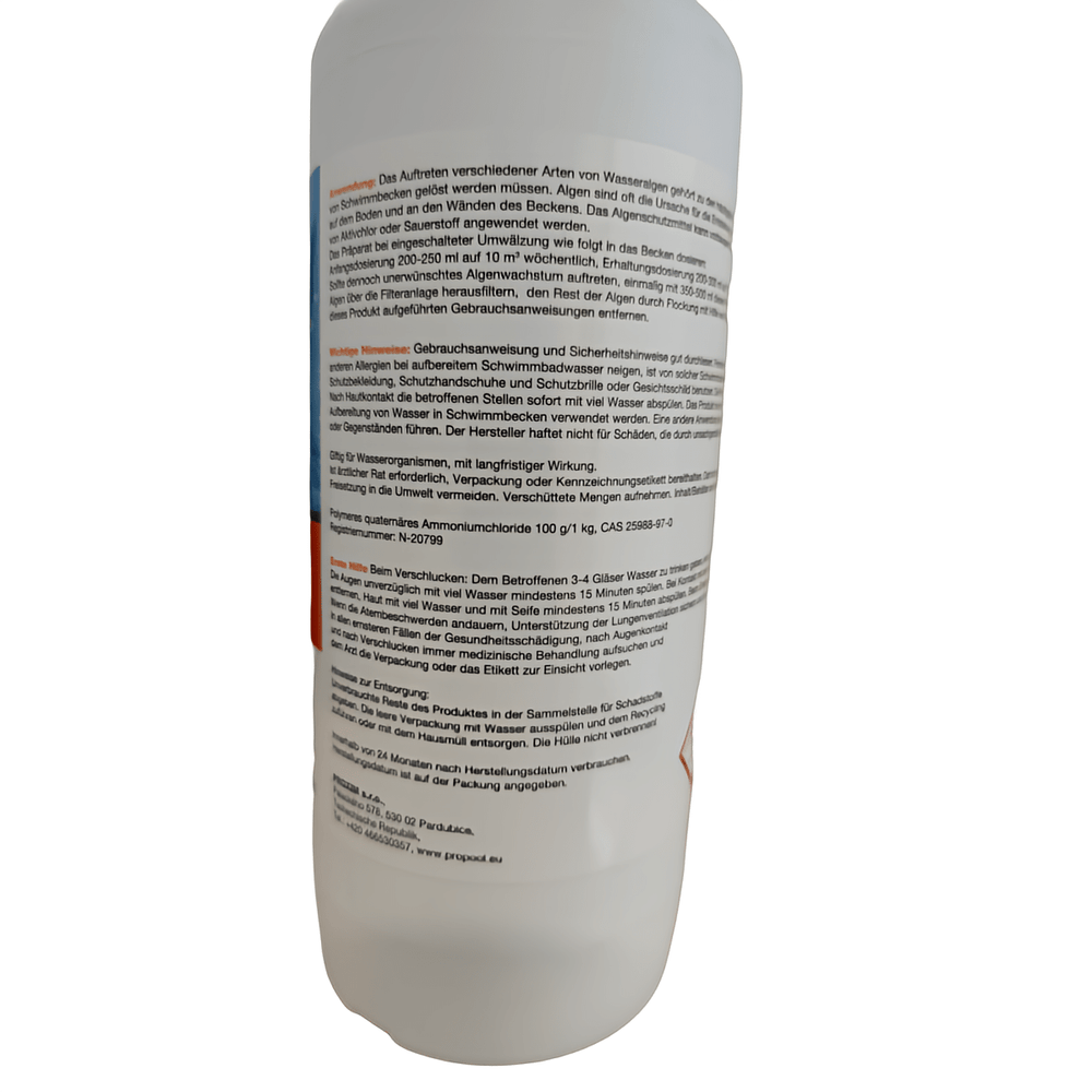 Algebekæmpelsen fjerner pålideligt alle typer poolalger og kan nemt kombineres med aktive klor- og iltprodukter. Dette skaber et effektivt miljø, der bremser væksten af ​​skadelige bakterier og dermed bidrager til rent og hygiejnisk poolvand på lang sigt.