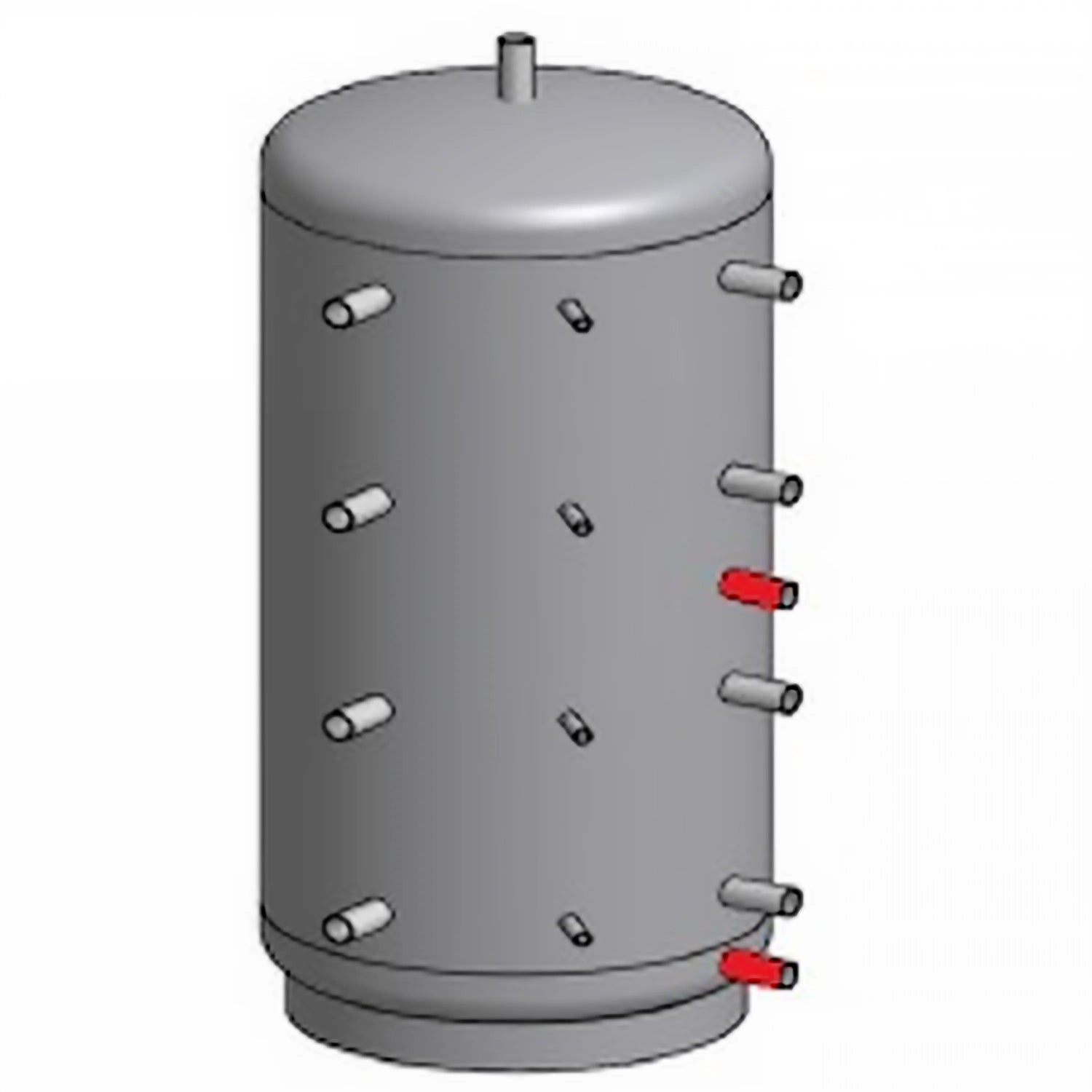 Die Muffenanordnung in einem 90°-Winkel erleichtert die Montage, die Verbindung mehrerer Speicher und die Installation zusätzlicher Komponenten wie Heizpatronen oder Fühler.