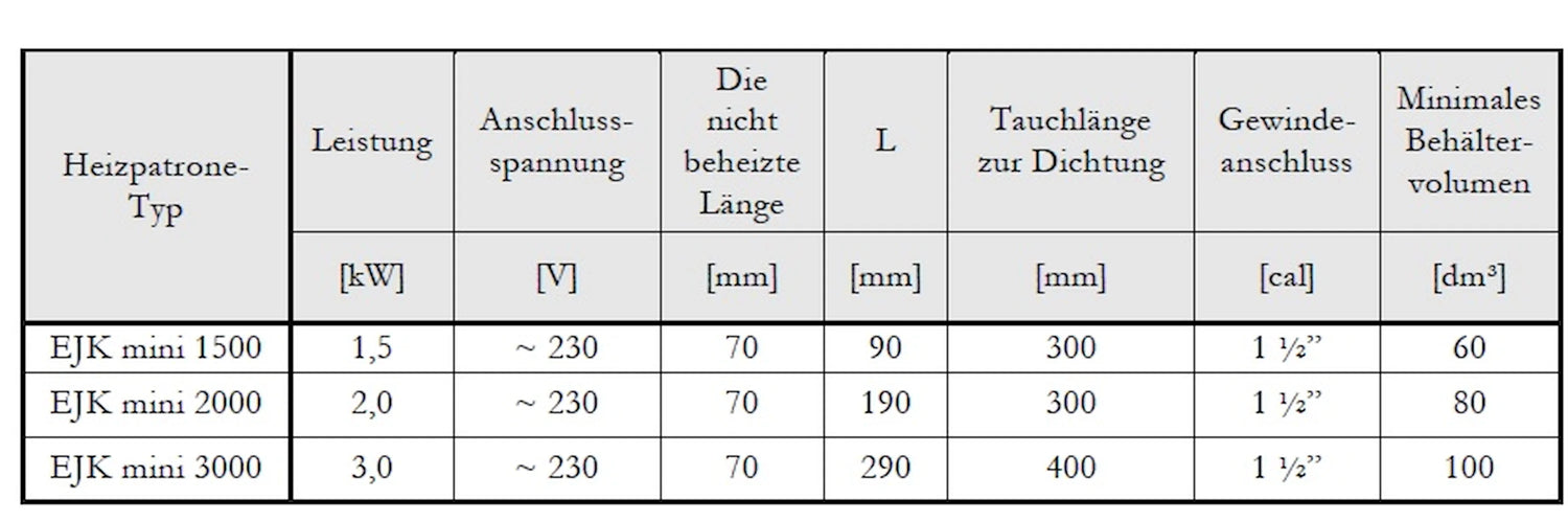 • Elektromet EJK Mini 1,5 kW Elektroheizstab inkl. Dichtung