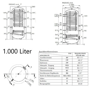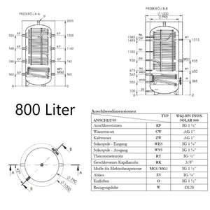 Heizwasser-Pufferspeicher mit Brauchwassererwärmung WGJ-BN INOX SOLAR