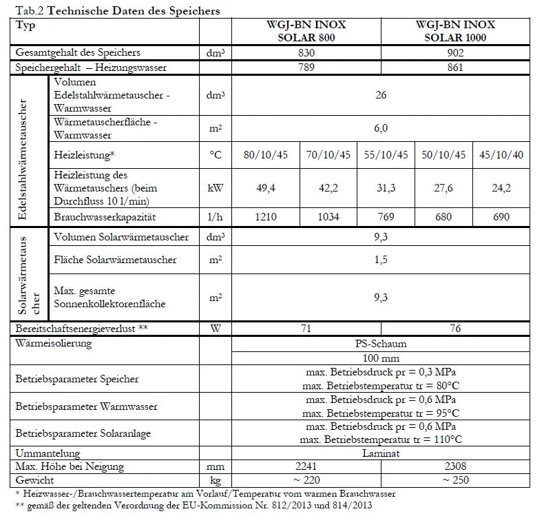 Der WGJ-BN INOX SOLAR ist ein kombinierter Pufferspeicher für Heizungswasser und Brauchwassererwärmer mit integrierter Edelstahl-Heizschlange als Wärmetauscher. Er wurde zur Einbindung in Zentralheizungsanlagen mit Heizkessel, Wärmepumpe oder zur Nutzung von Solarwärme konzipiert und ermöglicht sowohl die Speicherung von Heizenergie als auch die laufende Erwärmung von Trinkwasser.