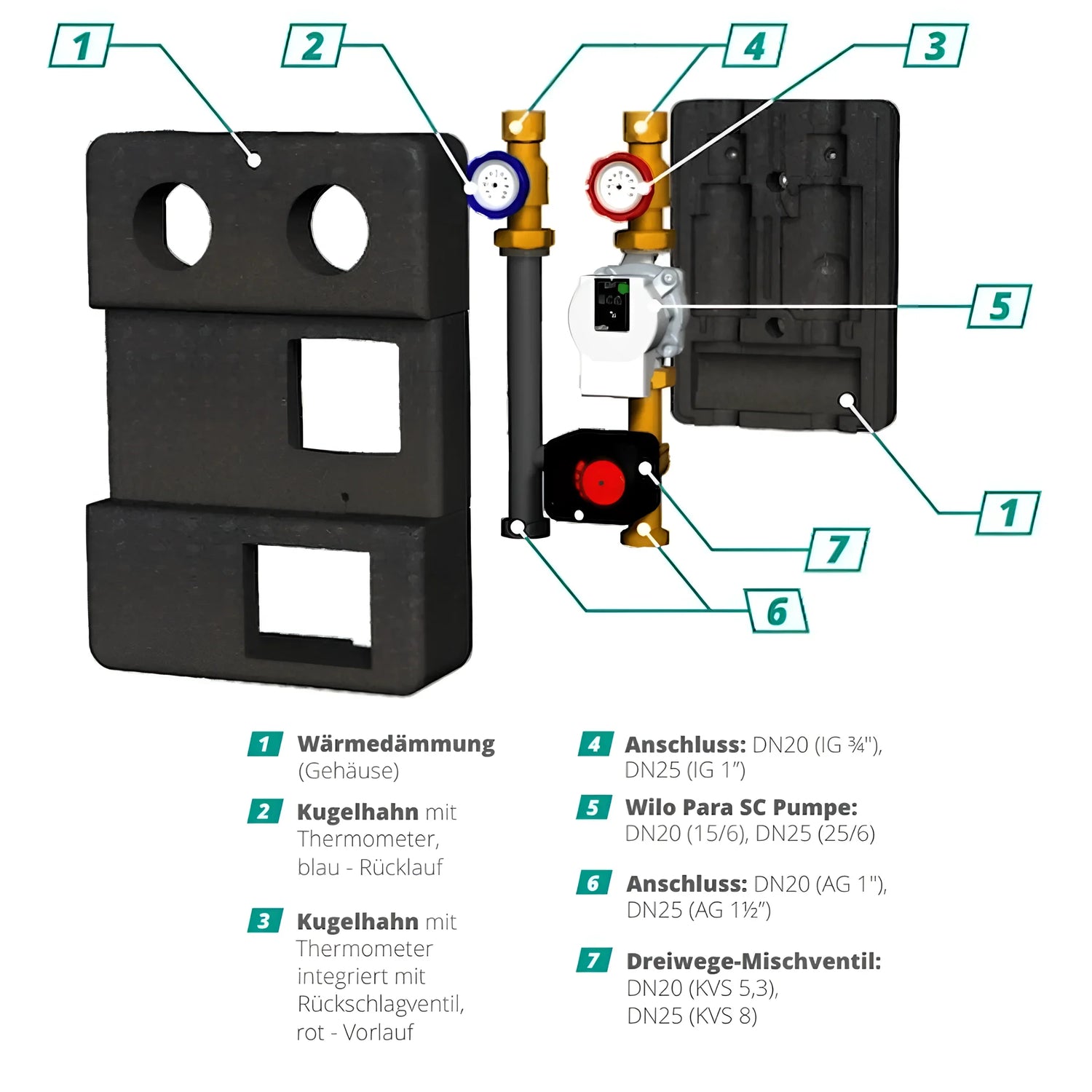 Heating circuit distributor with pump group & Three-way mixer