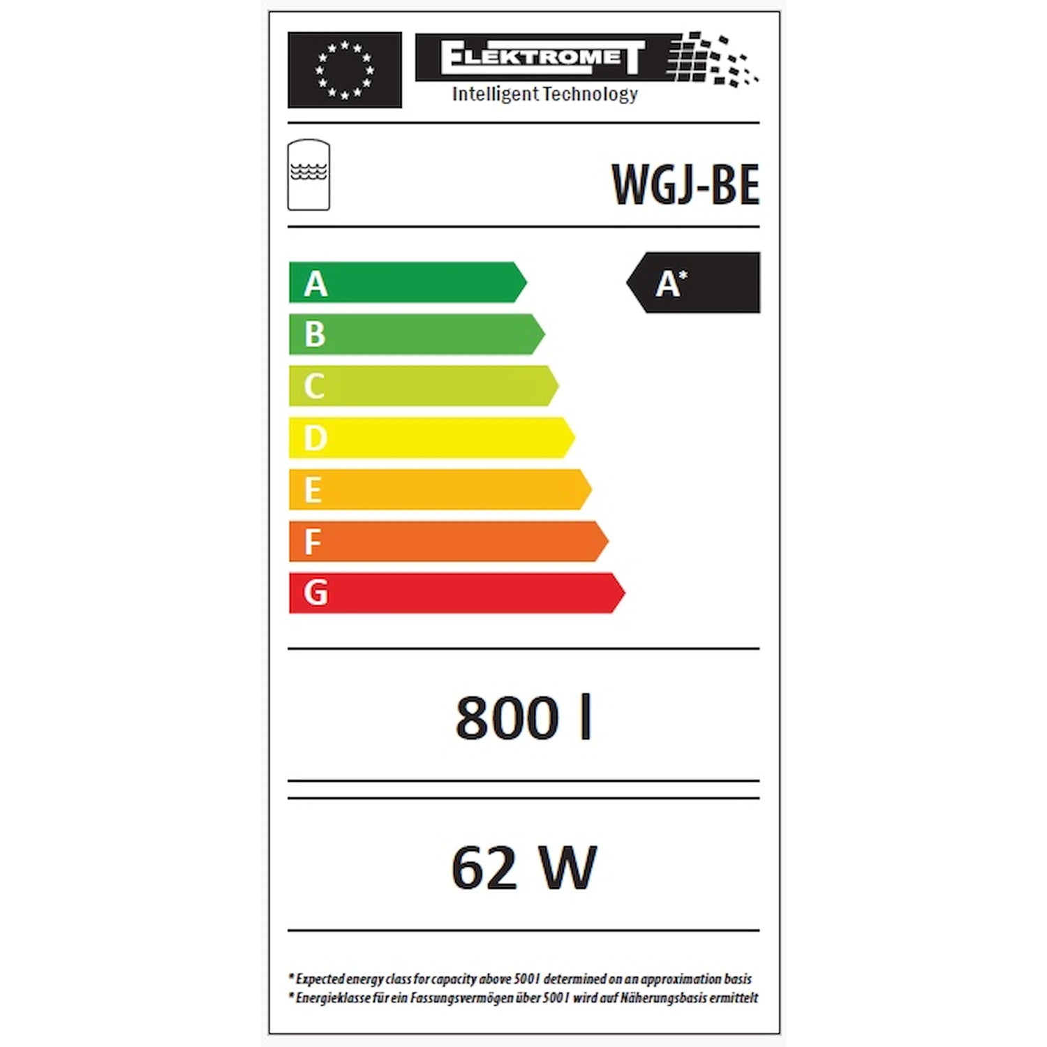 WGJ-BE 800 : Volume de stockage environ 710 l, pertes à l'arrêt environ 62 W, ​​poids environ 143 kg. WGJ-BE 1000 : Volume de stockage environ 830 l, pertes à l'arrêt environ 71 W, poids environ 160 kg. Pression de service maximale : 0,3 MPa ; Température de service maximale : 80 °C.