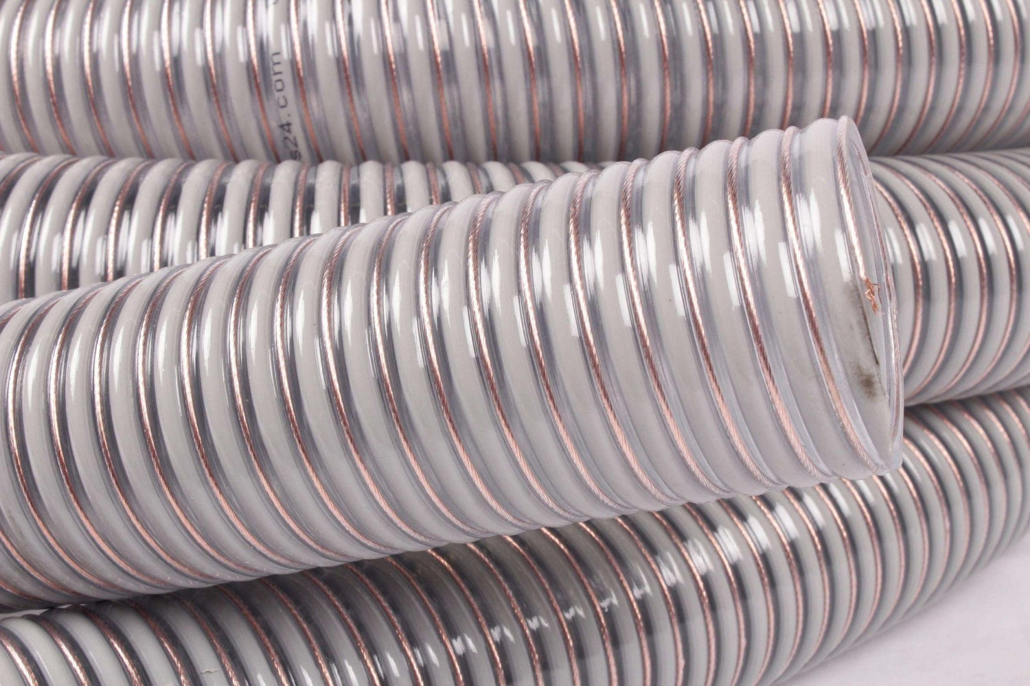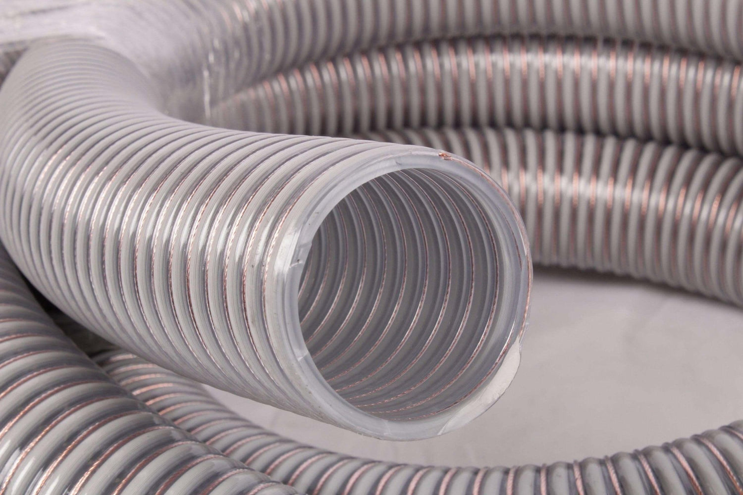Žarna yra antistatinė ir pagaminta iš PVC su įterpta standžia PVC spirale ir integruotais vario pluoštais. Ypatingą dėmesį atkreipkite į įžeminimą iš abiejų pusių.