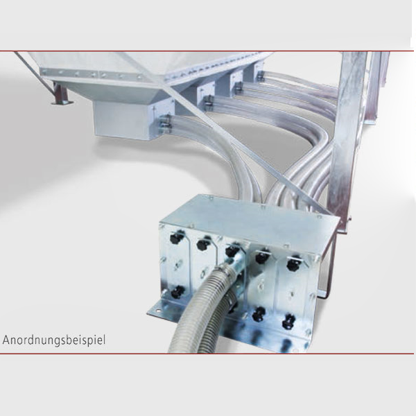 La unidad de conmutación es especialmente adecuada para sistemas de pellets que funcionan en estaciones de aspiración. Gracias a sus versátiles opciones de conexión para boquillas de aspiración y retorno de aire con un diámetro de 50 mm, el dispositivo se integra a la perfección en diversos sistemas.