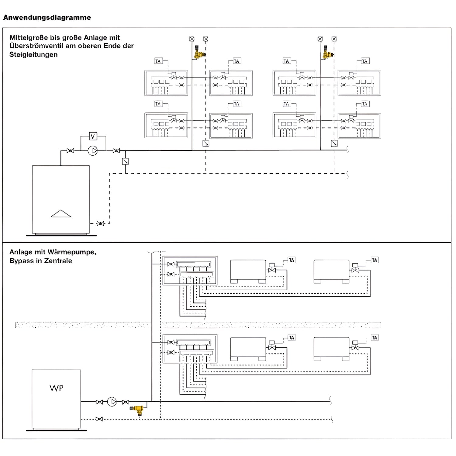 Ideal para circuitos de calefacción y refrigeración, control de retorno de bombas y como protección contra sobrecorriente en sistemas hidrónicos. La válvula garantiza condiciones de presión constante y evita alteraciones del flujo en secciones sensibles.