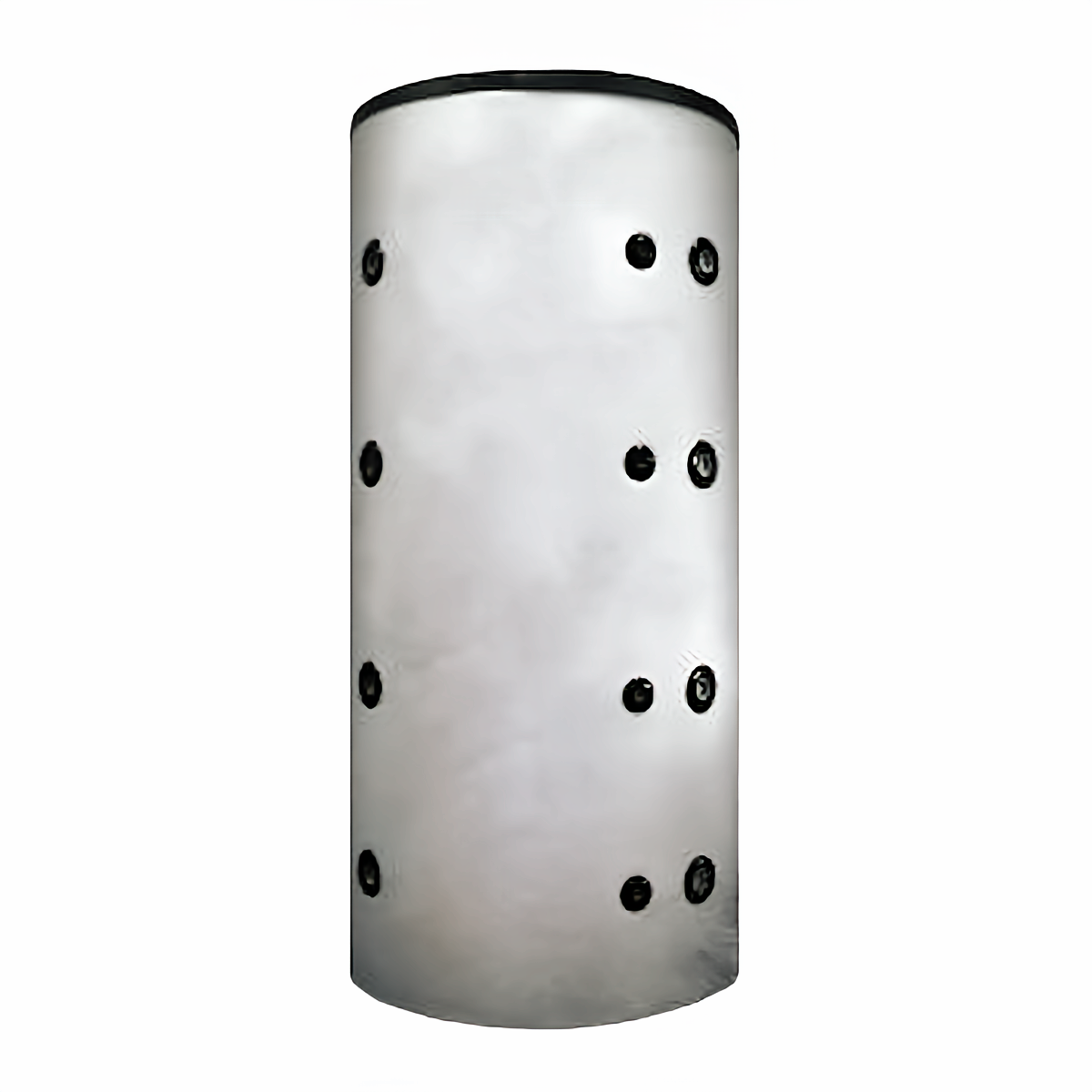 El depósito de inercia de 800 litros funciona como una solución eficiente de almacenamiento de agua caliente y calor que compensa las fluctuaciones de temperatura y estabiliza el funcionamiento de la calefacción. Garantiza un ajuste de la potencia del generador de calor según la demanda.