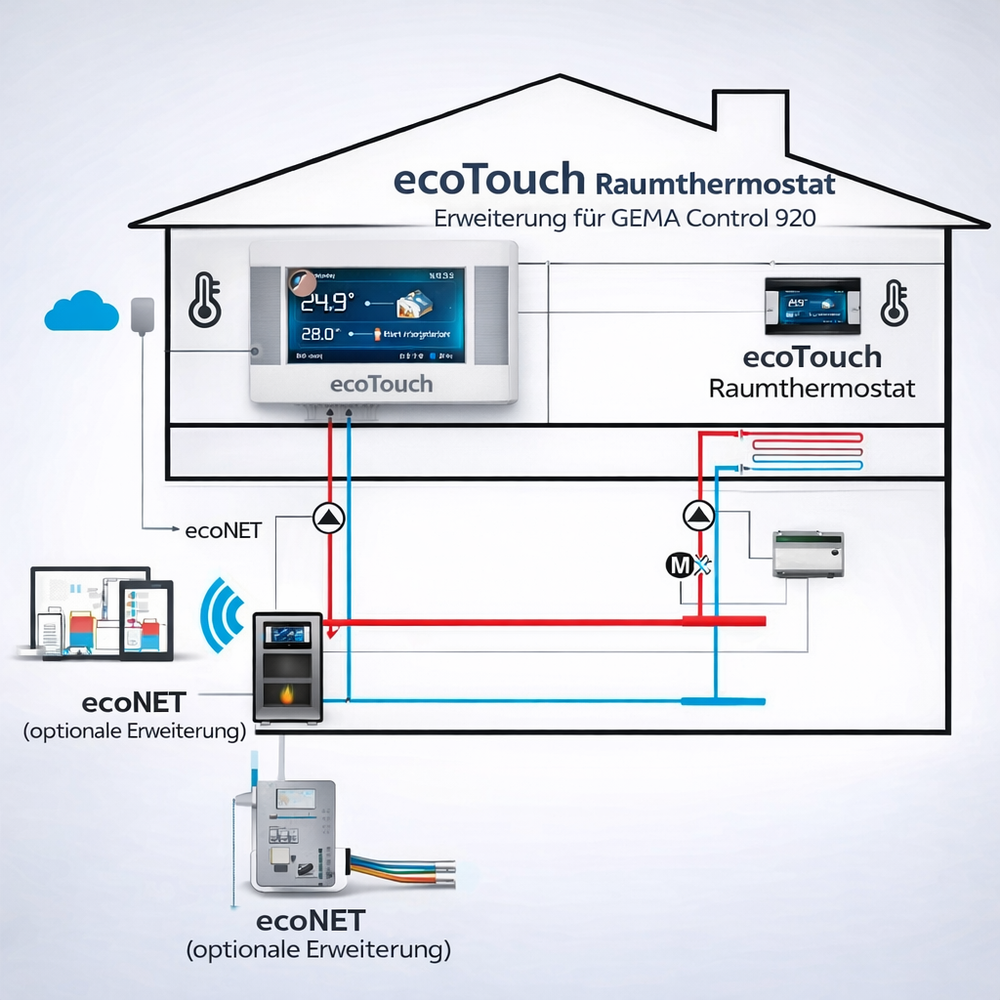 Cu termostatul de cameră PLUM eco Touch, extindeți semnificativ capacitățile sistemului dumneavoastră de control al încălzirii Gema CONTROL 920. Este ideal pentru gospodăriile care necesită un control mai precis al temperaturii sau controlul mai multor camere. Această extindere nu numai că îmbunătățește confortul locuinței, dar ajută și la optimizarea consumului de energie, permițând reglarea precisă a temperaturii în funcție de nevoile dumneavoastră.