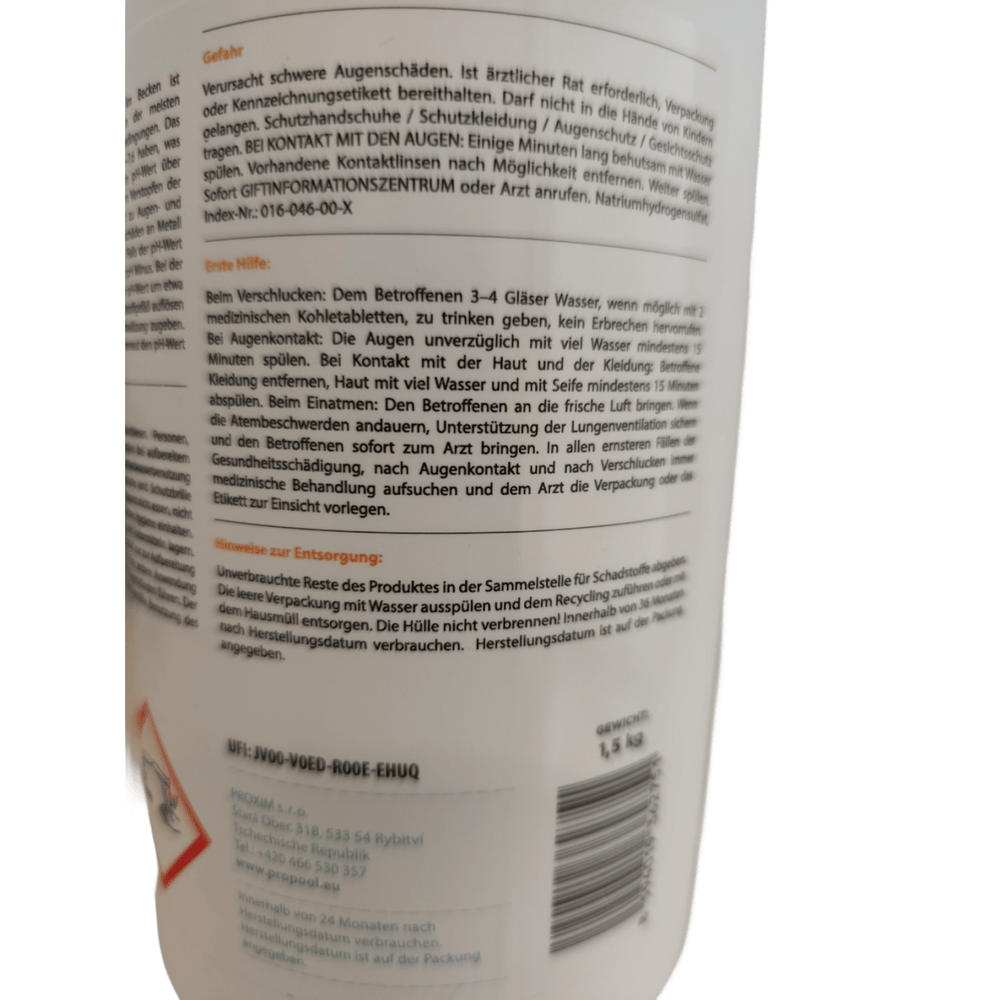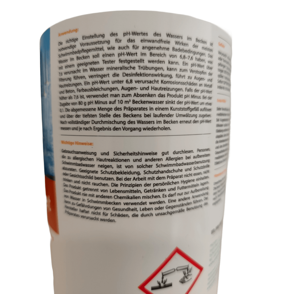 Je dôležité poznamenať, že pH Minus 1,5 kg je určený výlučne na úpravu kyslosti a nie je vhodný na čistenie vody. Vysoká tvrdosť vody môže navyše znížiť účinnosť produktu, takže v prípade tvrdej vody môžu byť potrebné ďalšie opatrenia na stabilizáciu tvrdosti.