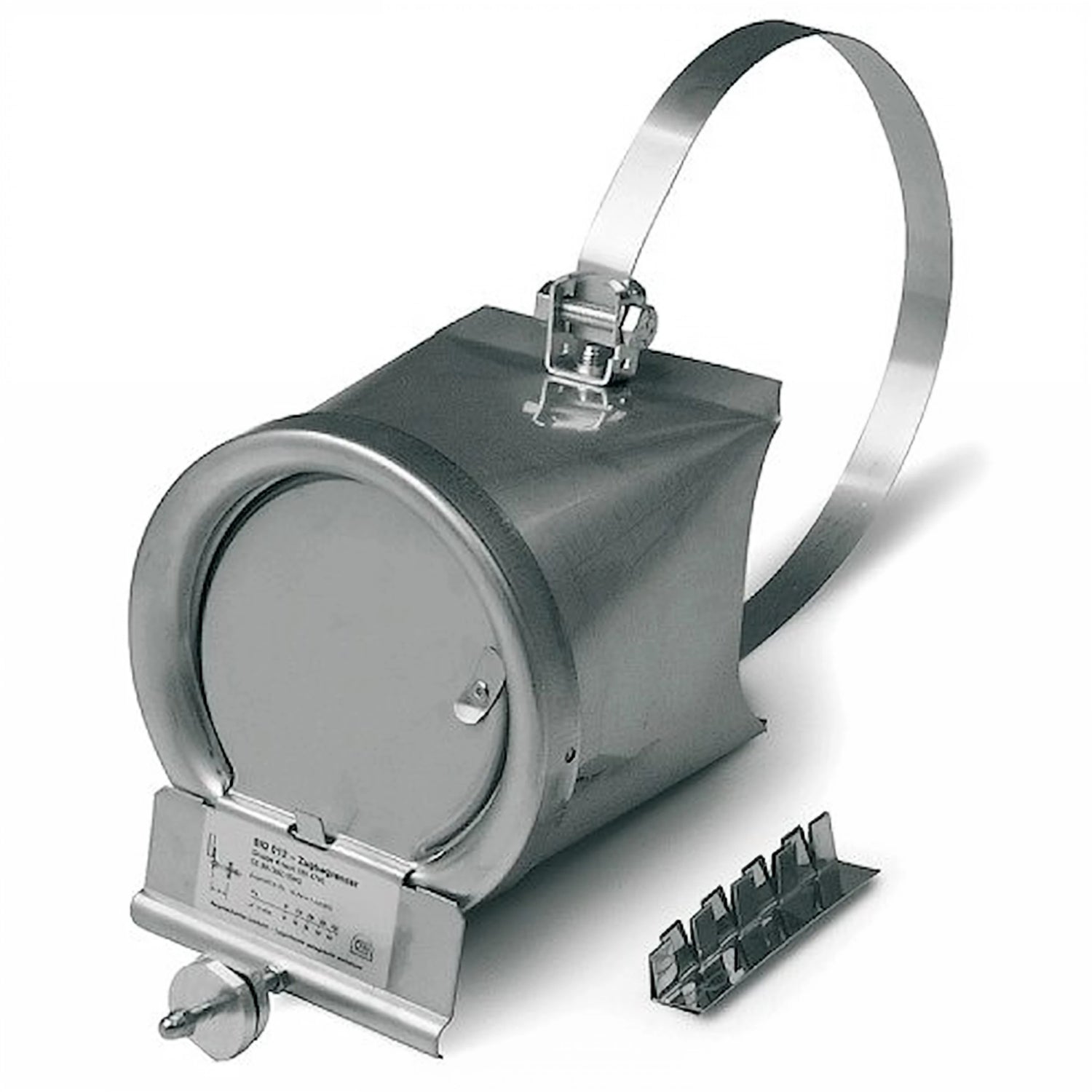 Enota je pritrjena z napenjalnim vijakom; priložen je univerzalni priključek za montažo dimne cevi. Podrobne dimenzije in informacije o priključitvi najdete v tehničnem listu.